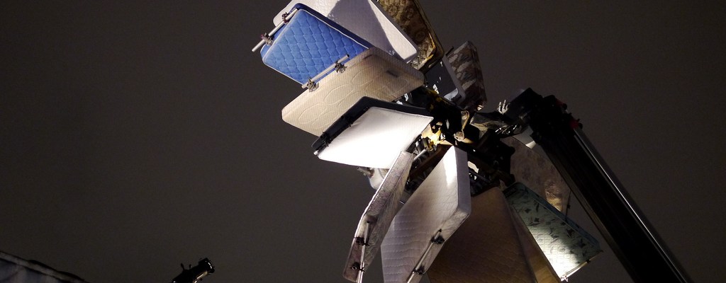 L’image d’en-tête est l’installation Police et Paysage de Mathieu Valade dans le cadre du projet « Autant en emporte le vent » (2012). Crédits: Véronique Lépine, Julie Villeneuve et Yves Marceau